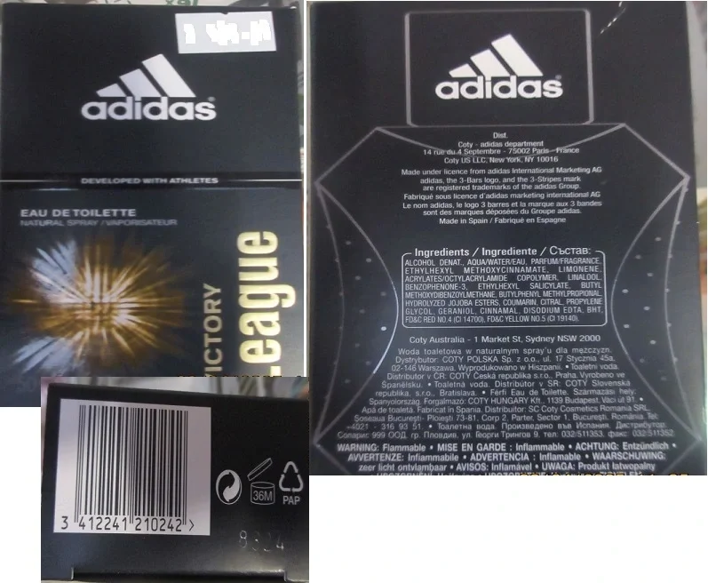 Stanovení nebezpečného výrobku -adidas, VICTORY League, EAU DE TOILETTE