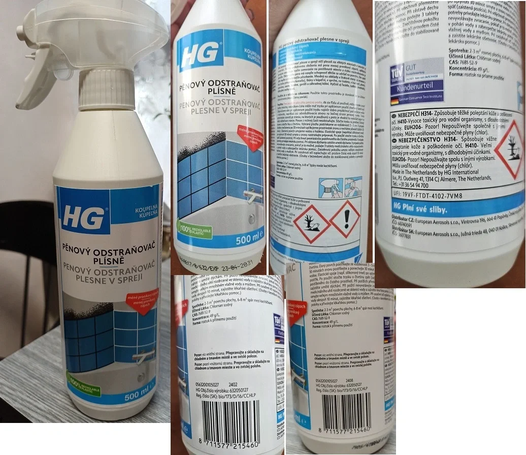 Stanovení nebezpečného výrobku - biocidní přípravek - HG, Pěnový odstraňovač plísně