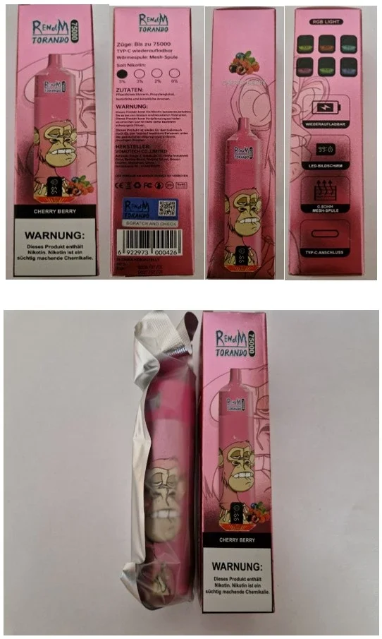Stanovení nebezpečného výrobku - jednorázová elektronická cigareta zn. RENdM TORANDO, 75000 puffs, koncentrace nikotinové soli: 5%, 1 příchuť: CHERRY BERRY, EAN: 6922973000426, číslo v ICSMS CI: GEN251128336408