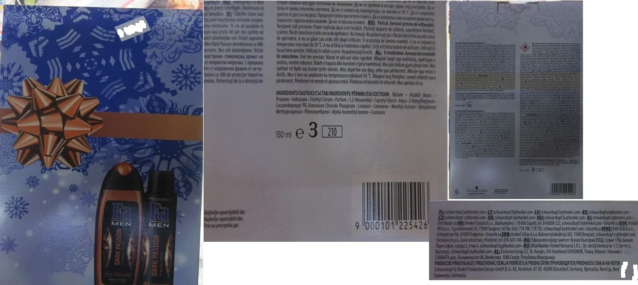 Stanovení nebezpečného výrobku - Kosmetická sada Fa MEN DARK PASSION