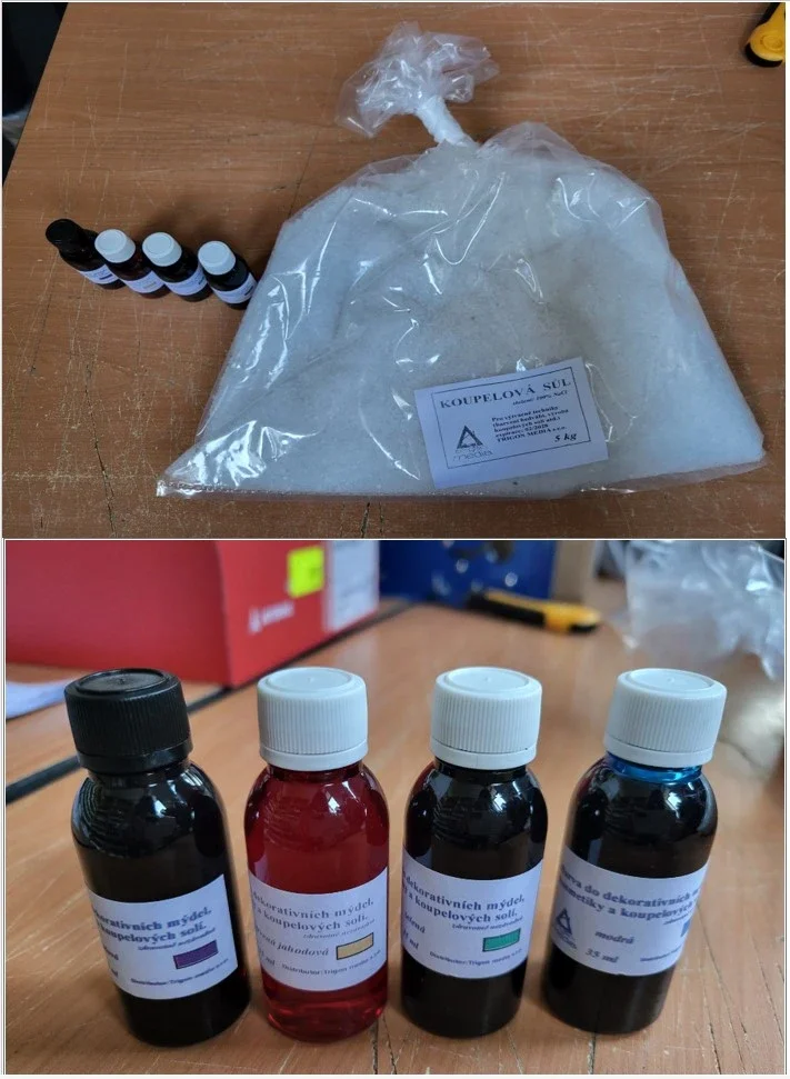 Nebezpečný výrobek - Sada na výrobu koupelové soli, čtyři barvy, 5 kg