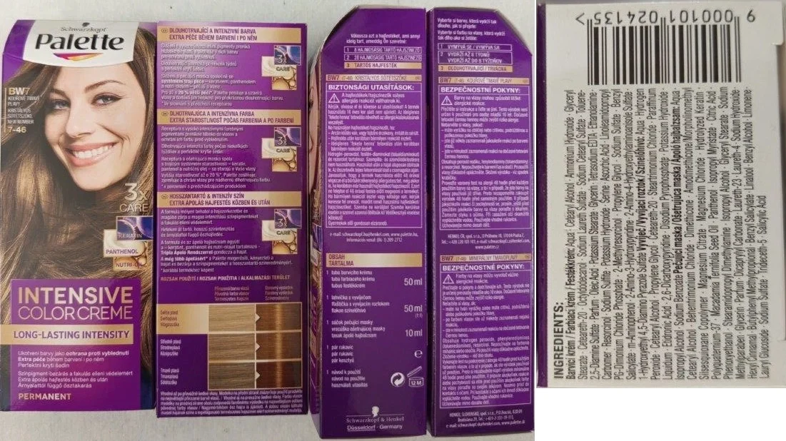 Stanovení nebezpečného výrobku - Schwarzkopf, Palette, INTENSIVE COLOR CREME, BW7 KOUŘOVĚ TMAVĚ PLAVÝ, 7-46