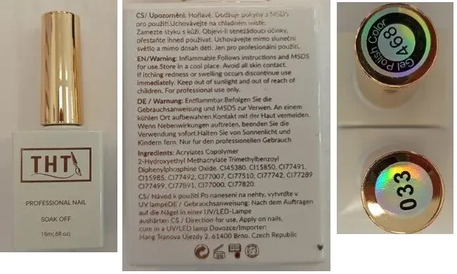 Stanovení nebezpečného výrobku - THT, PROFESSIONAL NAIL SOAK OFF, 15 ml, 362, 376, 033, 468 (Gel Polish Color)