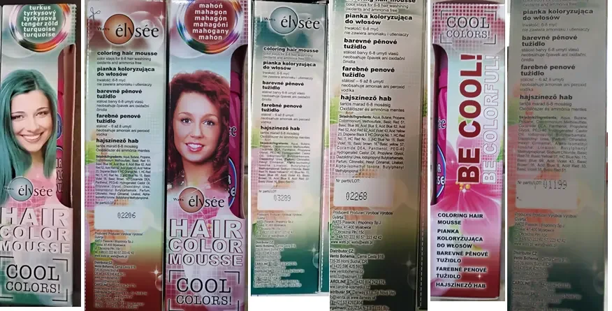 Stanovení nebezpečného výrobku - Wats élysée, HAIR COLOR MOUSE, COOL COLORS! barevné pěnové tužidlo, tyrkysový 78, mahagon 46